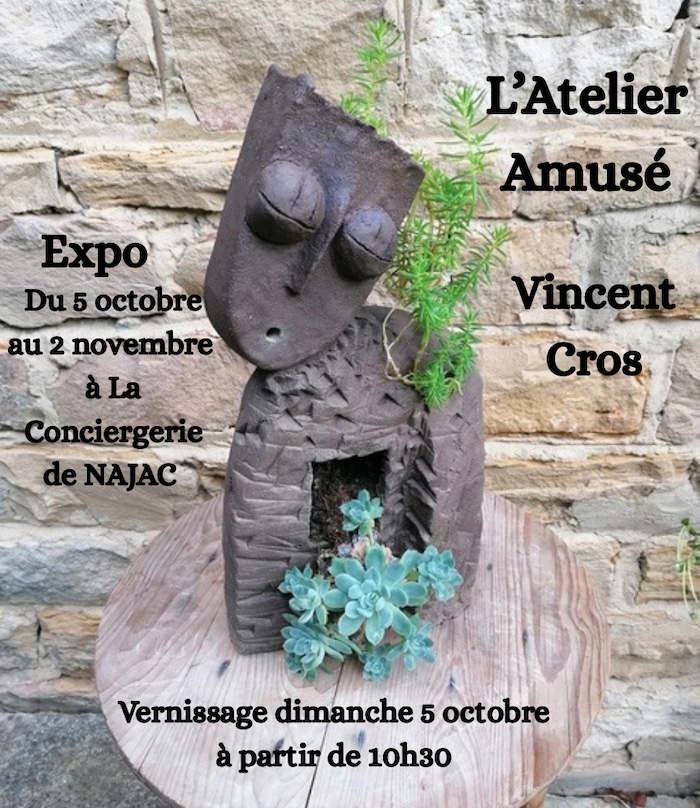 Il crée à Carmaux, où il anime L’Atelier Amusé — un lieu d’exposition, de création et de partage.